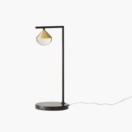 Lampa stołowa Kine oferuje oryginalny design inspirowany charakterystycznymi azjatyckimi kapeluszami. Solidnie wykonana marmurowa podstawa zapewni stabilność. natomiast przepiękny ozdobny klosz