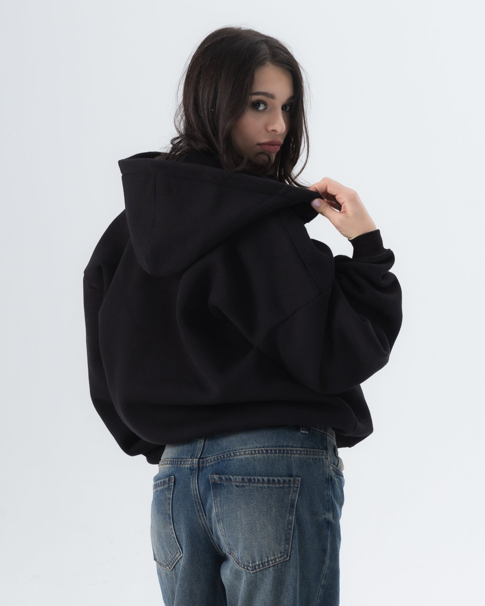 CRYSTALAND ESSENTIAL BLACK ZIP HOODIE