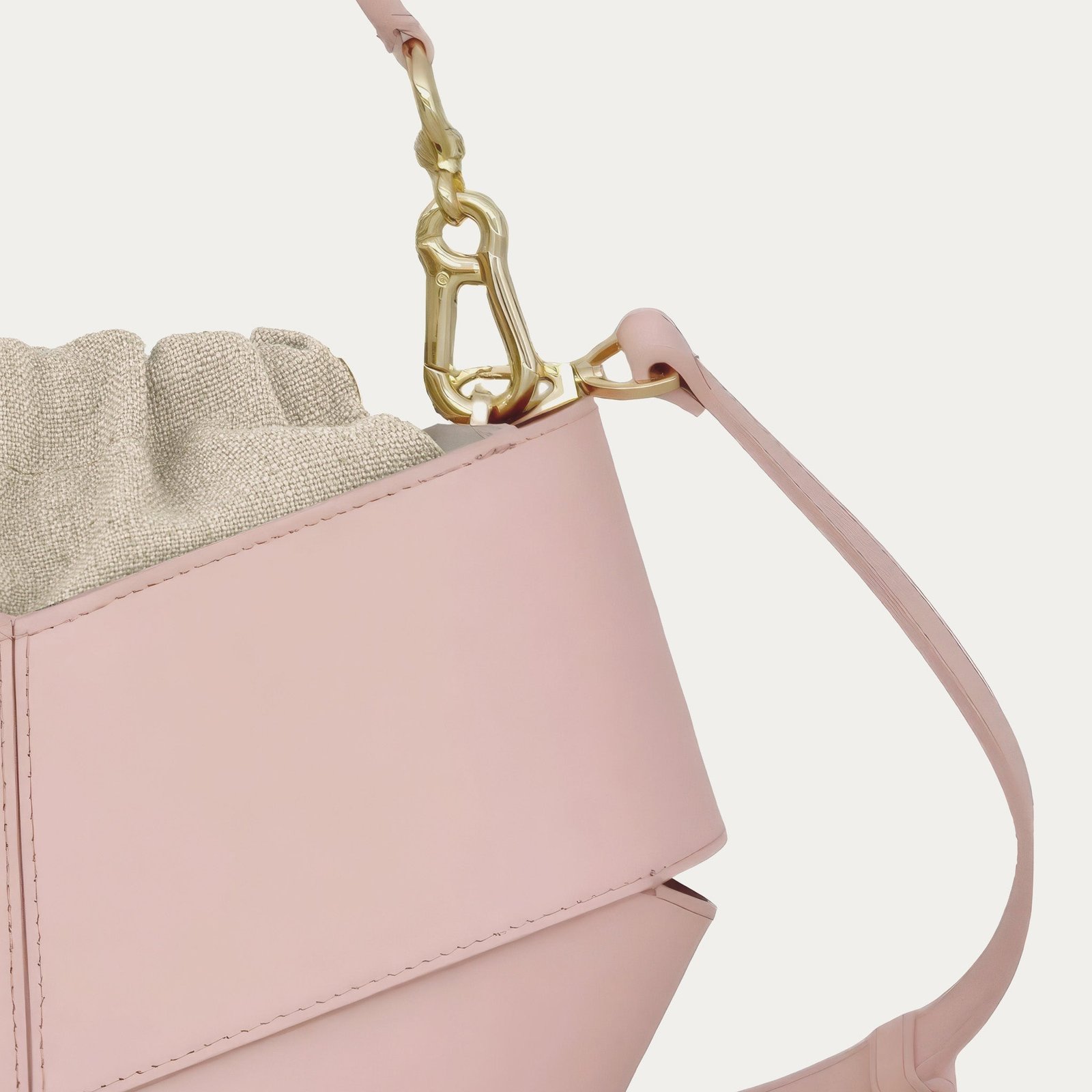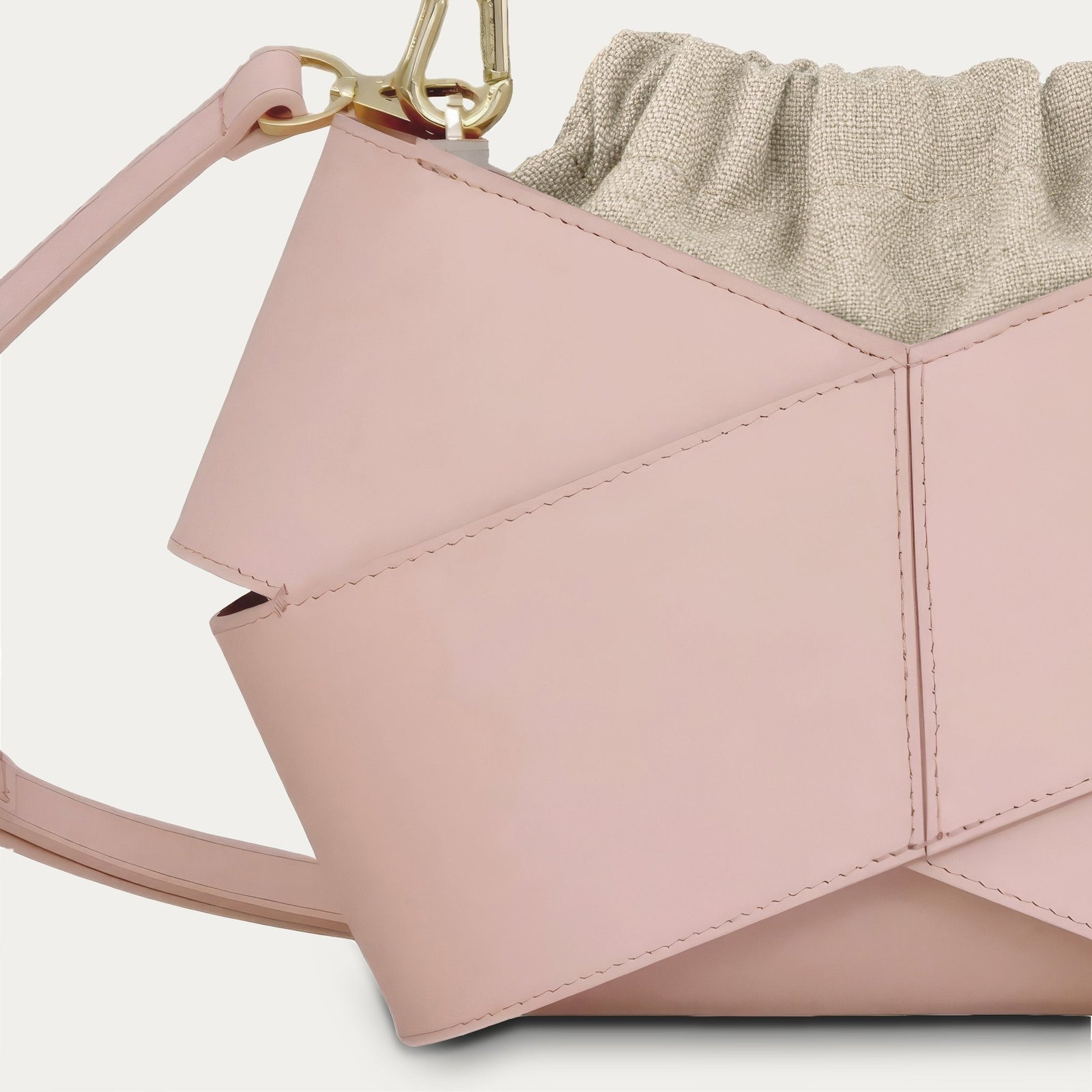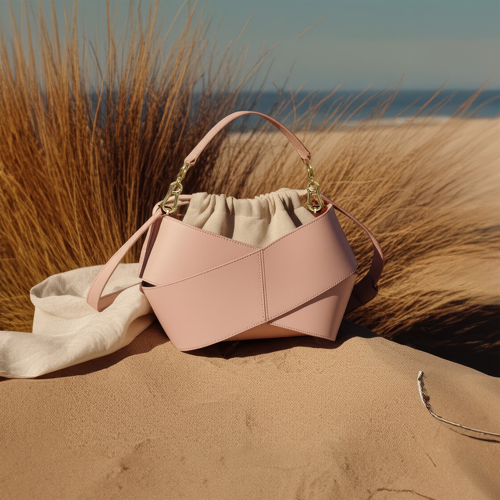 Forma torby. stworzona z dwóch kawałków skóry owiniętych wokół siebie. przyciąga uwagę swoim nowoczesnym wyglądem. W jej wnętrzu znajduje się luzem umieszczony woreczek. który skutecznie zabezpiecza zawartość przed przypadkowym wypadnięciem. Co więcej. woreczek można łatwo wymieniać. co pozwala na personalizację torby i nadanie jej nowego charakteru. Torba wyposażona jest w pasek na ramię. który zapewnia wygodę noszenia. oraz elegancką rączkę ze złotymi okuciami. Jest elegancka ale i praktyczna