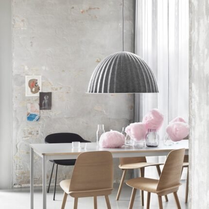 Zaprojektowana z materiału. który wykorzystuje do 41% włókien z plastikowych butelek pochodzących z recyklingu. lampa wisząca Under The Bell nie
